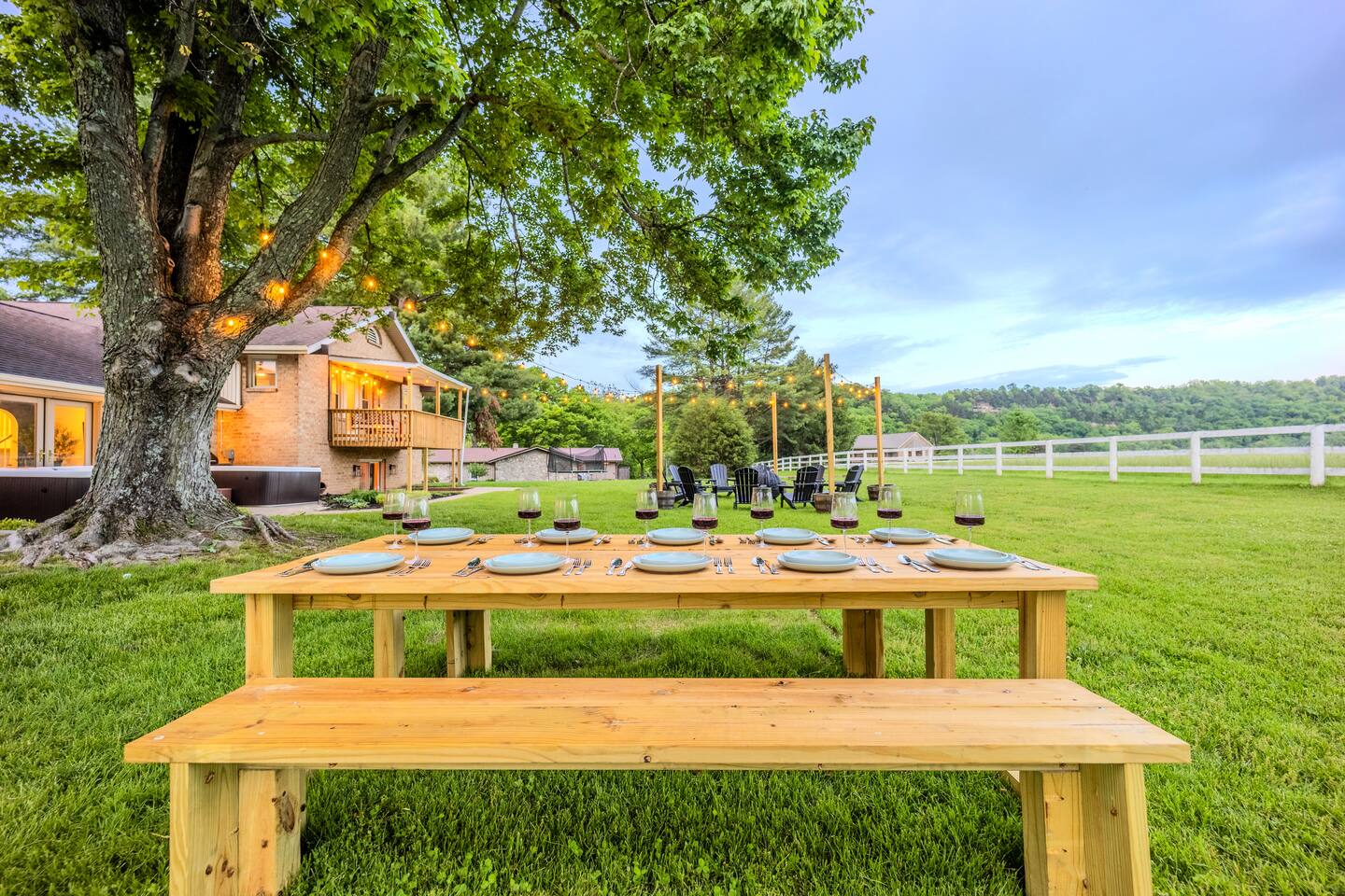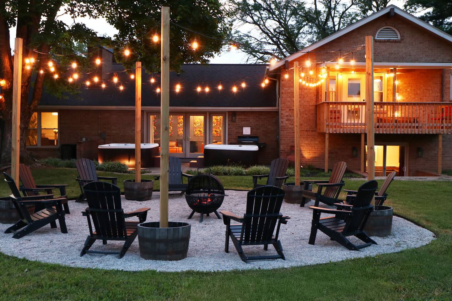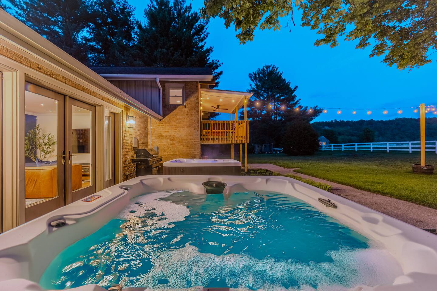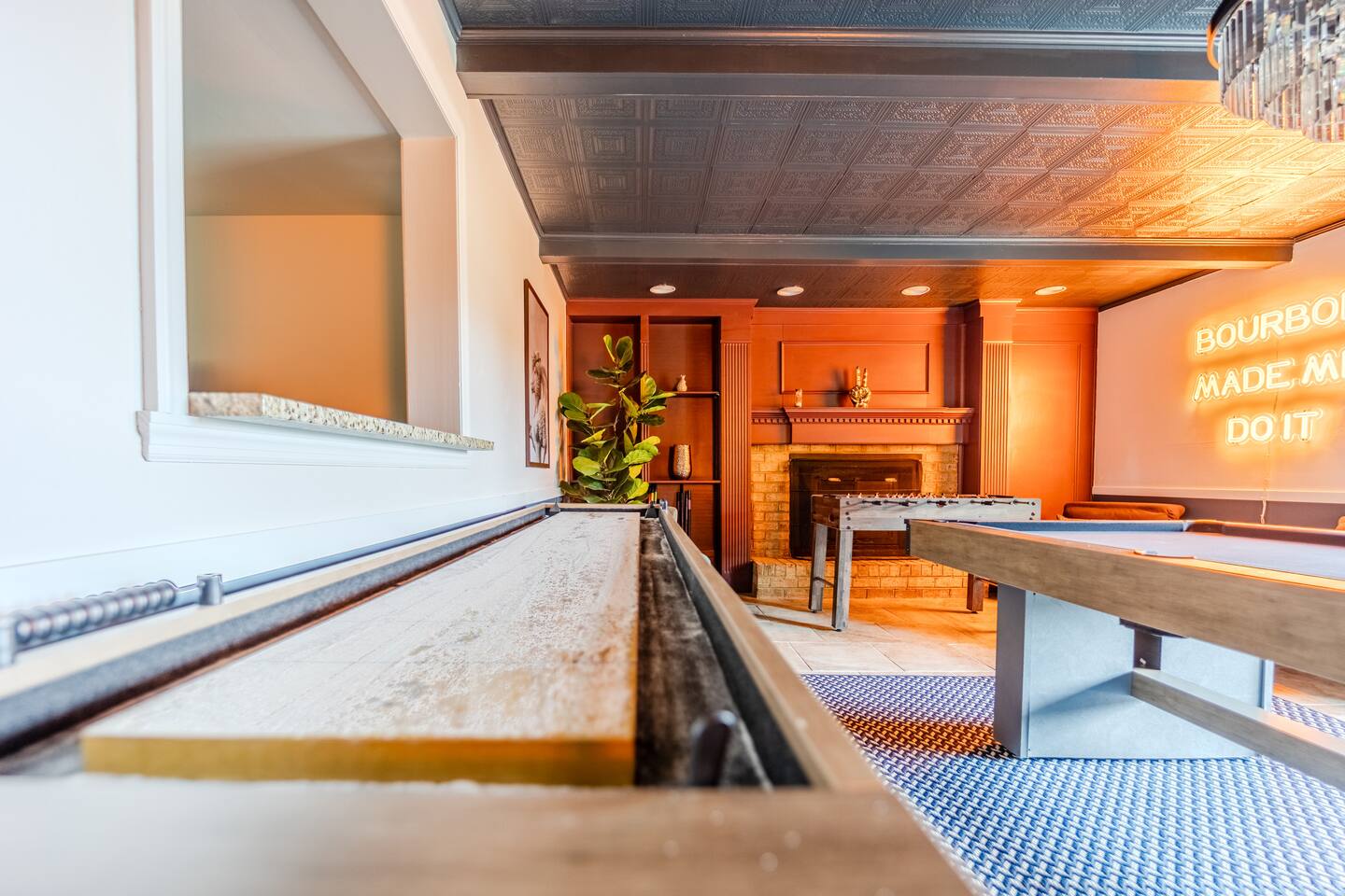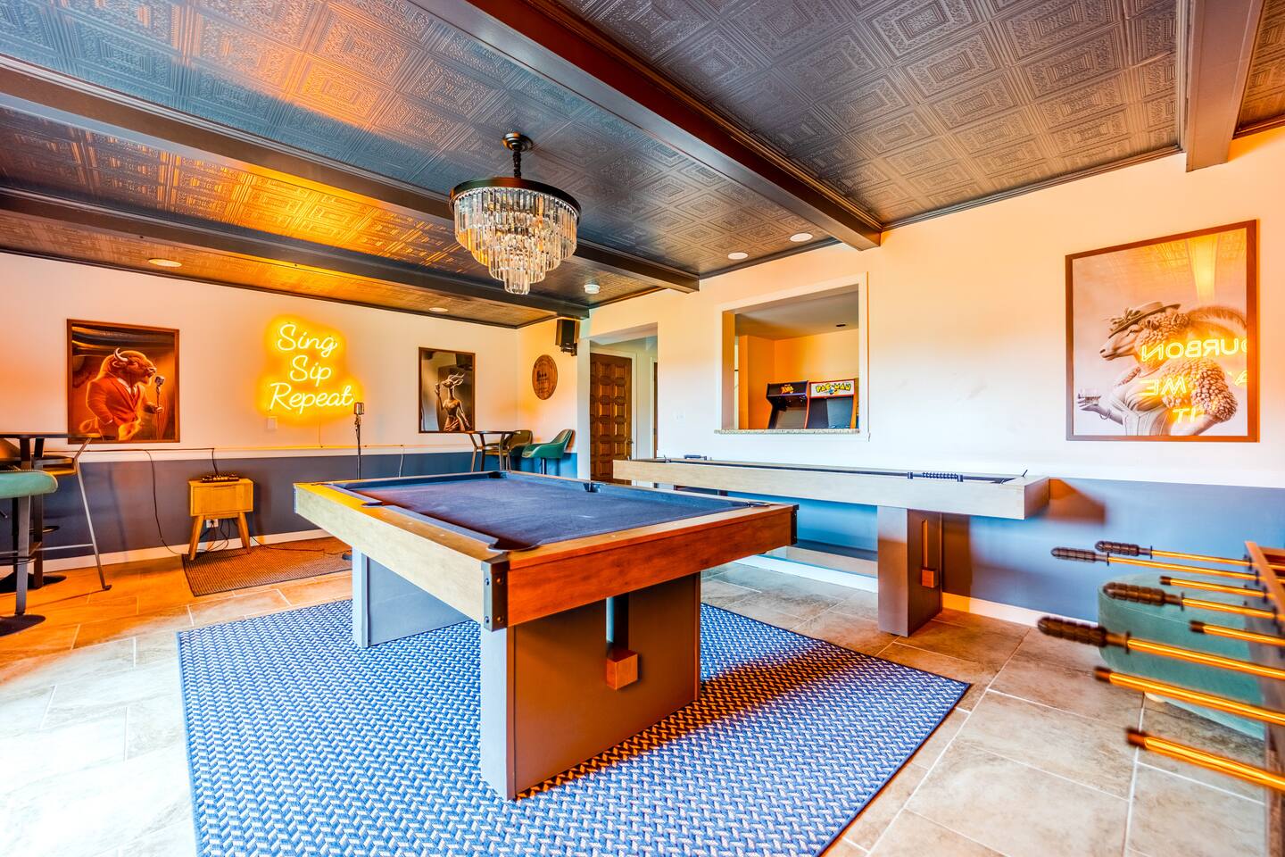 Experience bourbon country in style at this luxurious retreat just 5 miles from Buffalo Trace! With a speakeasy vibe and top-tier amenities, enjoy a game room with arcades, pool, foosball, shuffleboard, and karaoke. Unwind in two hot tubs, sip bourbon by the fire pit under the stars, or relax on the private deck overlooking serene farm views. Near distilleries, horse farms, and just an hour from the Kentucky Derby, this is the ultimate getaway for bourbon lovers and friends!