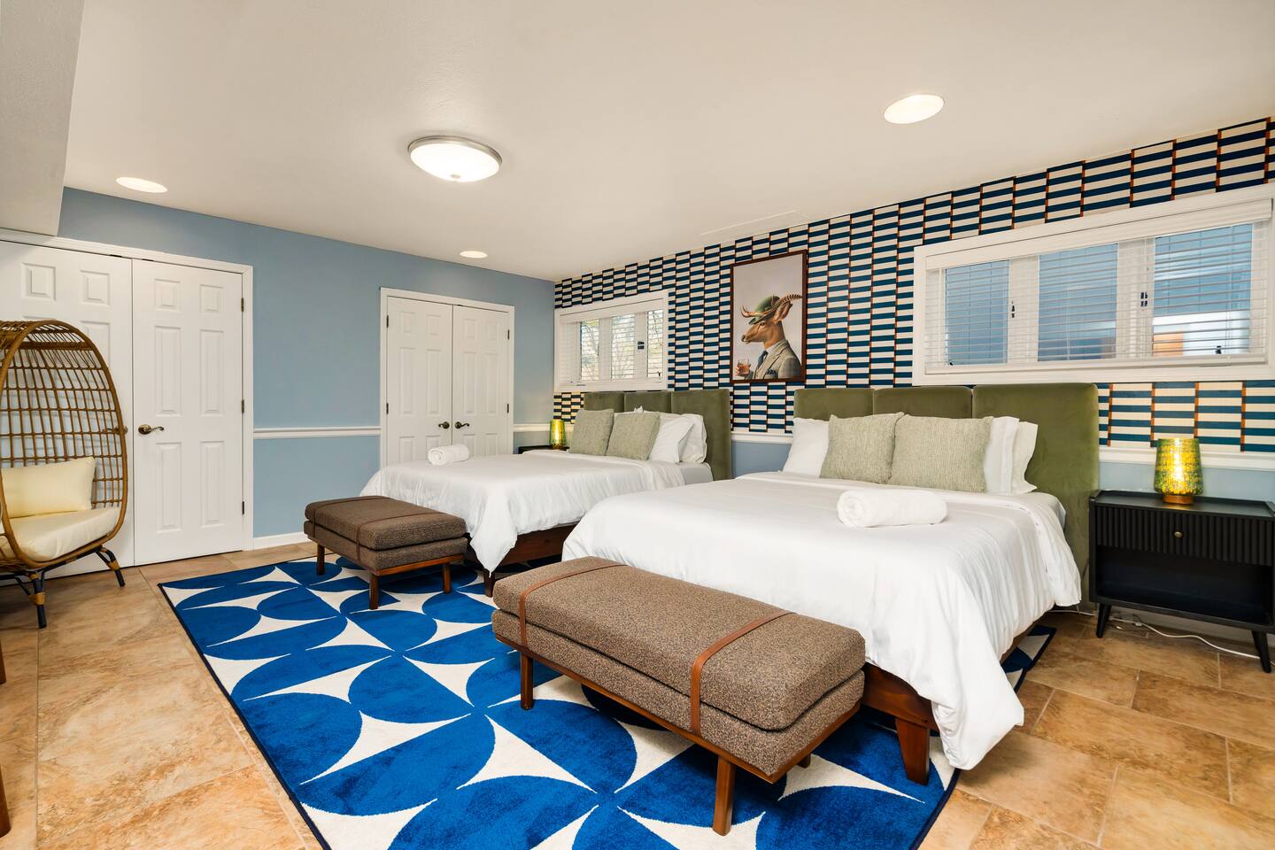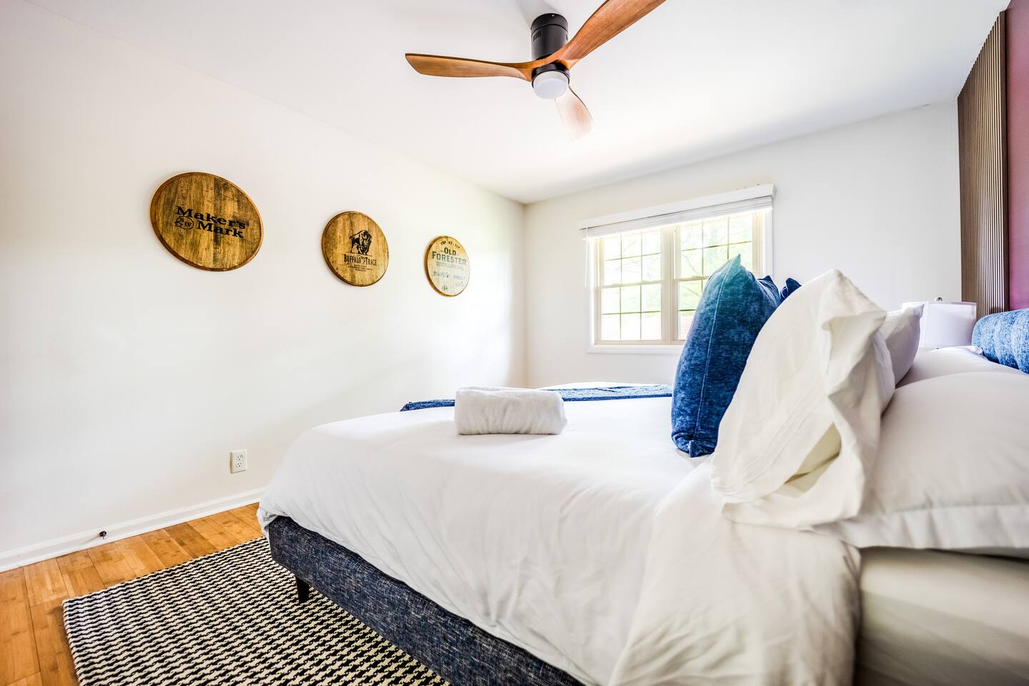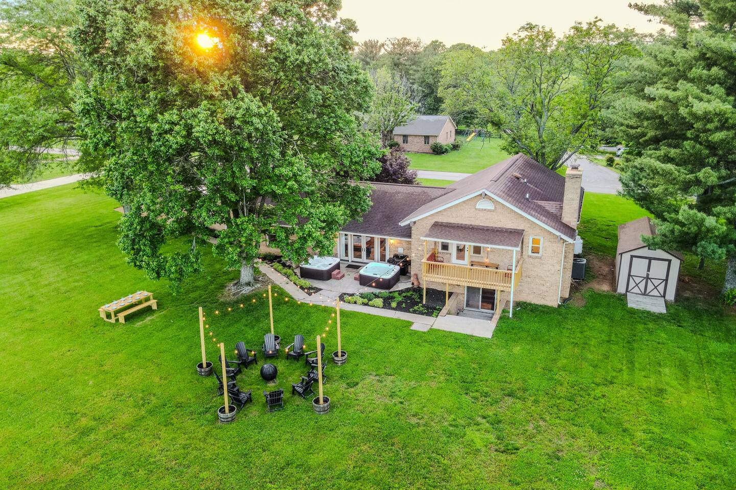 Step into luxury, fun, and relaxation at this one-of-a-kind retreat just about 4 miles from Buffalo Trace! Designed for bourbon lovers and groups seeking an unforgettable getaway, this spacious 4 bedroom, 3.5 bathroom home blends upscale comfort with endless entertainment. The Main House: Spacious, Elegant & Sleeps like a dream - 4 Bedrooms, 3.5 baths: 3 bedrooms feature luxurious king-size beds that ensure a restful night after a day of bourbon tasting. The other room is equipped with two queen size beds. Open & Inviting Layout: The perfect space to gather, dine, and unwind in style. Gourmet Kitchen: Fully stocked with an espresso & cappuccino machine for your morning pick-me-up. A proper adult and speakeasy style Gameroom! Let your fun begin in our one of a kind speakeasy Gameroom! Completely loaded with: - Four arcade games! Yes, and they're the fun ones! - A pool table, shuffleboard and foosball so everyone in your group can have some fun! - A Karaoke machine! TWO Hot Tubs & Firepit – Soak under the stars or sip bourbon by the fire. Outdoor Dining & Croquet – Enjoy meals at the picnic table or challenge friends to a round of croquet. Free EV Charging! Perfect Location About 4 miles to Buffalo Trace Distillery & the heart of the Bourbon Trail. Close to Horse Farms & just 1 hour from Churchill Downs for the Kentucky Derby! Whether you're sipping bourbon, singing your heart out in the game room, or soaking in the hot tub, this home is your ultimate Bourbon Trail retreat. Book your stay today! IMPORTANT Before you arrive you will be asked to complete guest verification through third-party provider Truvi. This is done to ensure we are keeping up-to-date with short-term rental regulations as well as providing both our guests and our properties with extra protection. Truvi will contact you via email and/or text to complete the verification. You will also be given the choice between paying a security deposit or a non-refundable damage waiver. Please complete this step prior to arriving at the property to enable a quick and easy check-in process.