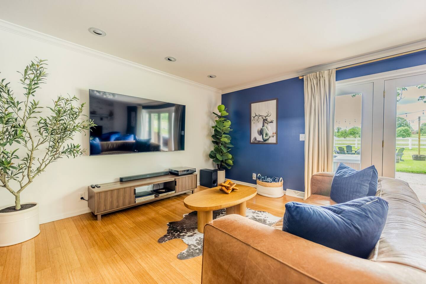 HOUSE RULES Treat our home with respect and care for it as you would your own. No smoking or vaping, no drugs, and no unregistered guests. See our guidebook for more details on the house rules. We do not allow pets in this home. Only 5 cars are allowed in the driveway at any given time. Do not park in the street. Quiet hours are form 10pm to 7AM CHECK-IN/CHECK-OUT DETAILS Easy self-check-in with a digital smart lock. Check in after 4 PM and check out by 10 AM. General checkout procedures are to lock the doors, close the windows, leave dishes clean or at least in the dishwasher, and leave used beds undone and used towels in the floor. Generally tidy up the place and leave it the way you found it. Nothing too complex :) While you're here to enjoy the countryside vibes, we also want to make you aware of the local wildlife that calls this area home. We've seen birds, mice, spiders, skunks and other critters at the property. Since we are located in the countryside, there are occasionally some insects that can get inside the house if the doors or windows are left open.